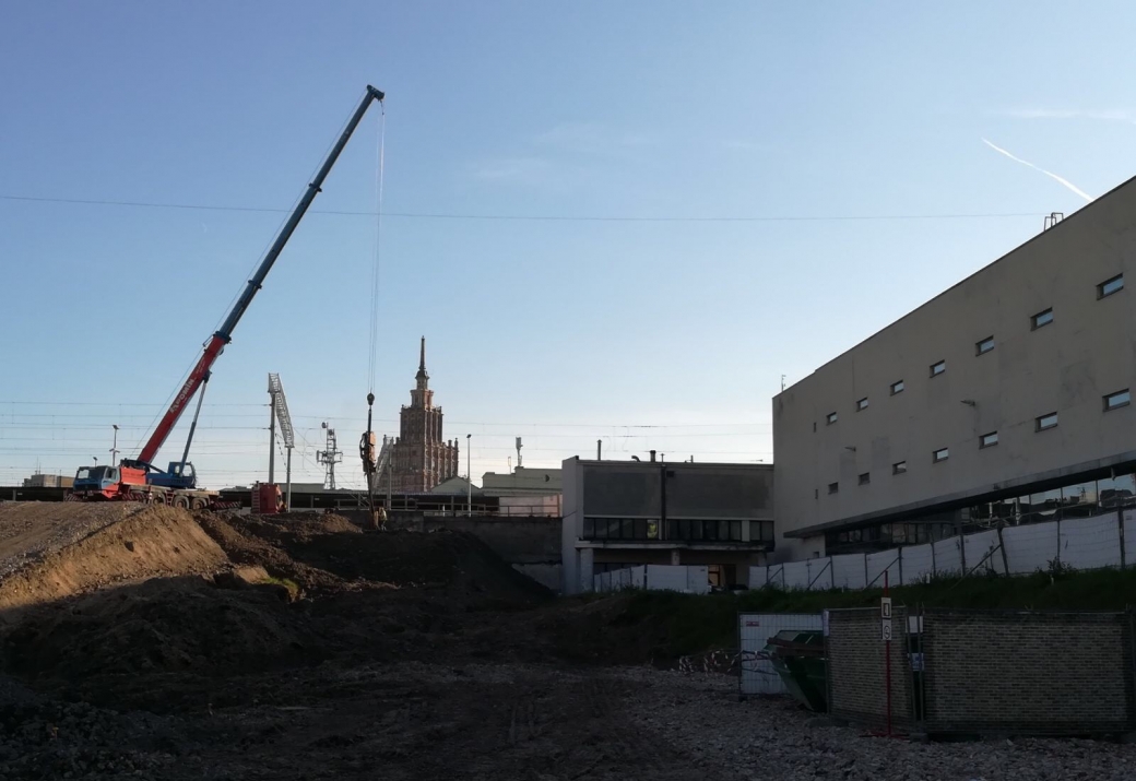 Nulles cikla būvdarbu ietvaros AS “BMGS” veic pagaidu norobežojošās rievsienas konstrukcijas ierīkošanu Rīgas Pasažieru stacijas dzelzceļa klātnes noturēšanai.